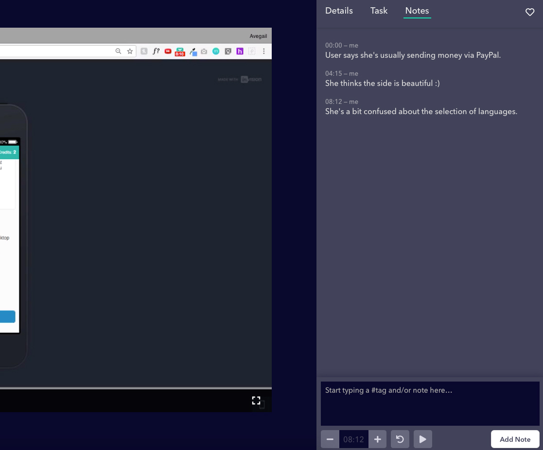 In Userbrain you can take notes when a problem crops up during testing.