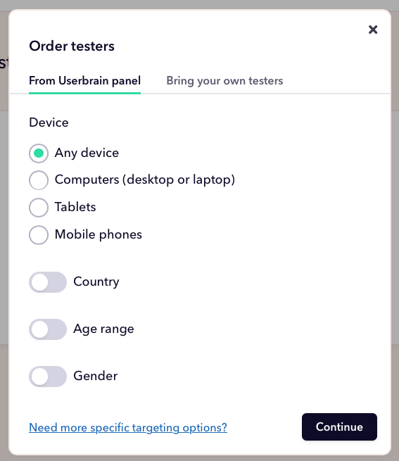 As Userbrain offers you a pool of testers it’s now time to choose the participants you want to test with. Different options are offered: