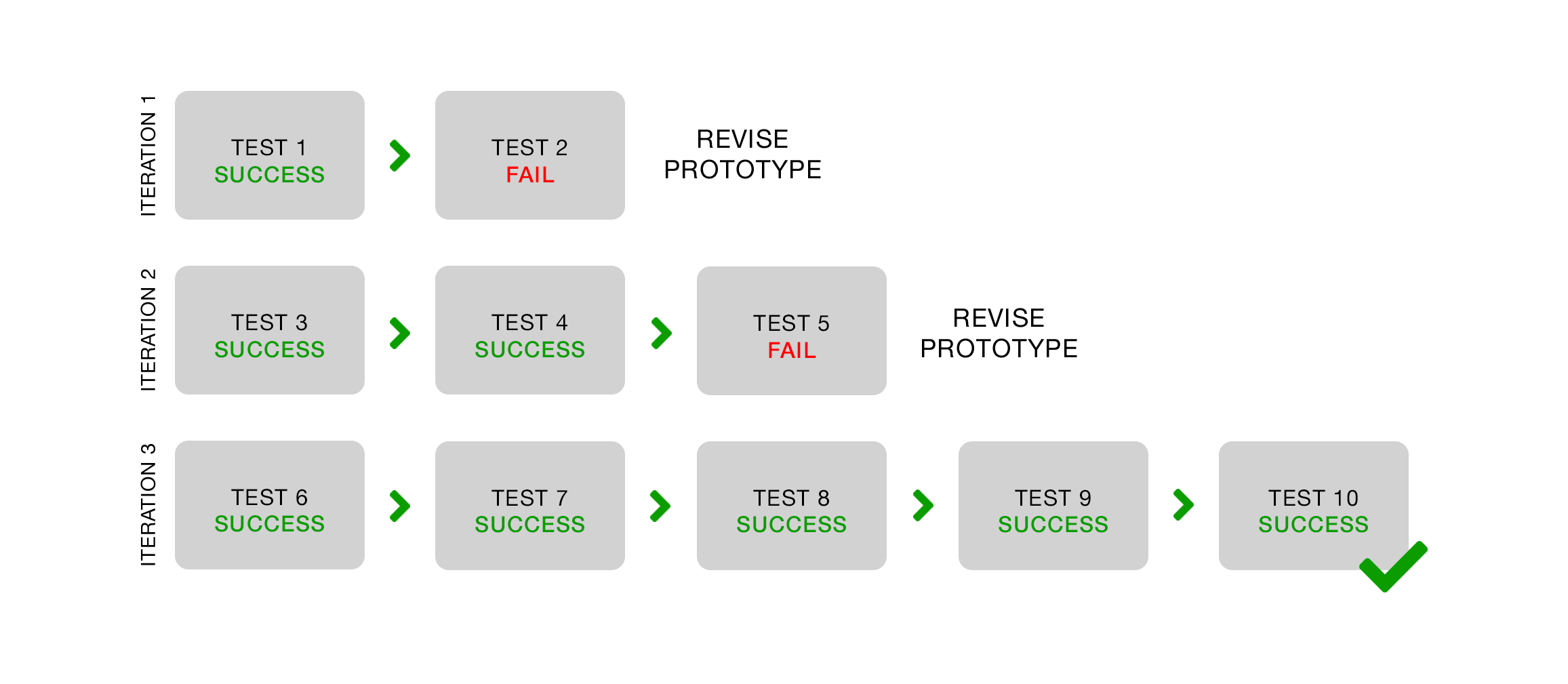 After the changes are made, you continue testing and stop again if a problem occurs. This method is perfect for testing a prototype because you can quickly test and get feedback on new solutions.