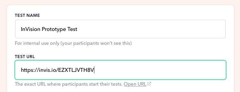 When done, your link settings for your InVision prototype test should look like this: