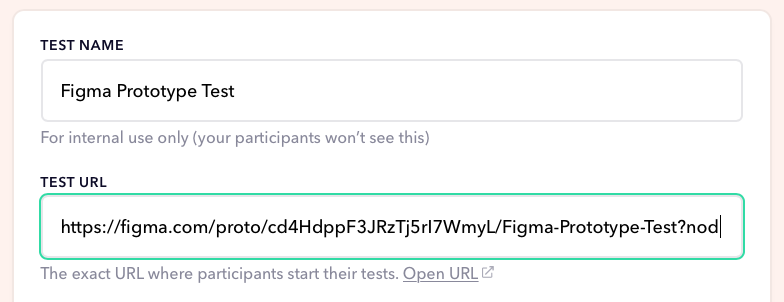 Name your test and paste the previously generated link into the Test URL field.