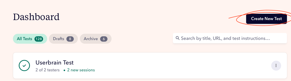 After signing up, start by creating a new test: